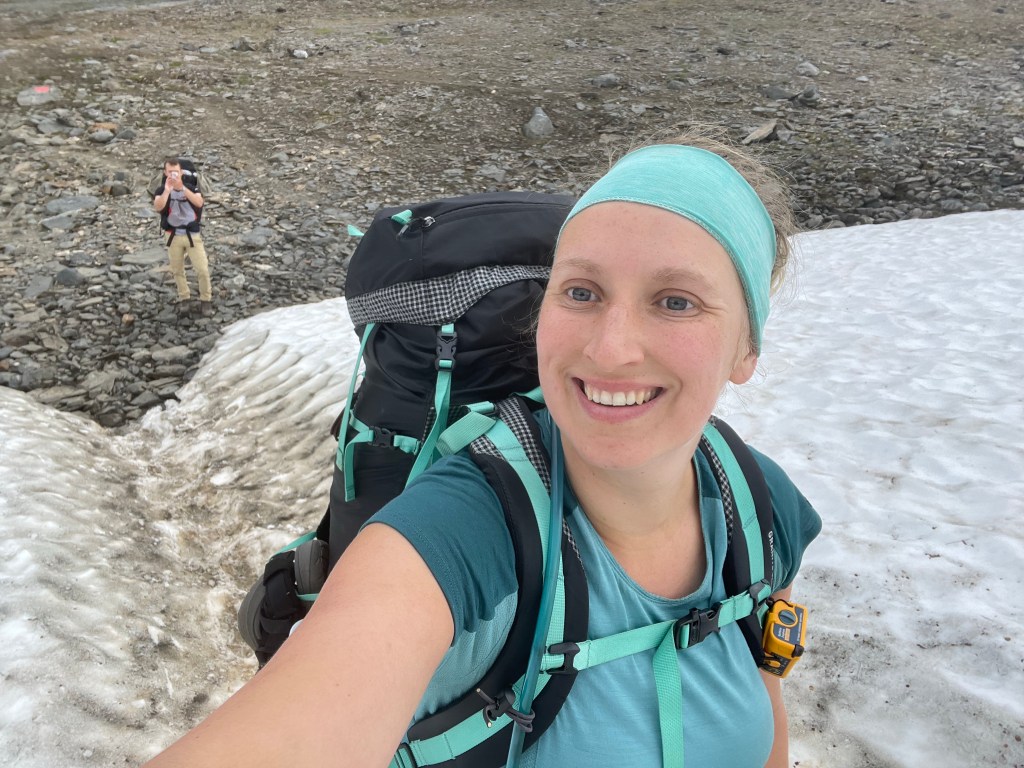 We woke up late (passed 8) and packed the tent quickly while I was still being attacked by mosquitoes. That will probably be a returning topic. Donald decided to have breakfast higher up which reduced the number of mosquitoes.