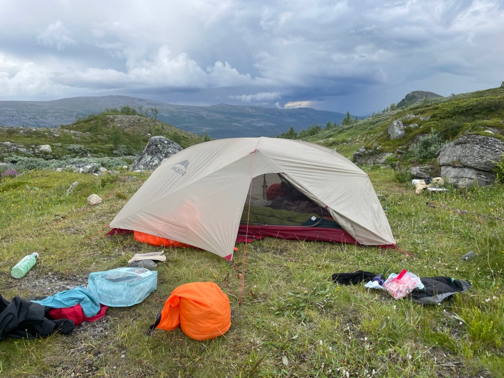 Last push of 2km but once there, thunderclouds came around us. We had a short discussion about what would be wise. Putting the tent up before the rain came or continuing to camp in the tree line. We choose option A and s luck would have it, the thundercloud surpassed us. Meaning we could do the evening routine in peace. Tired from the day, we were in the tent by 8, and 20 min later the rain did start.
