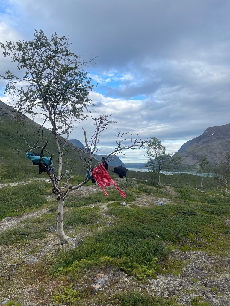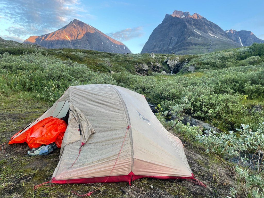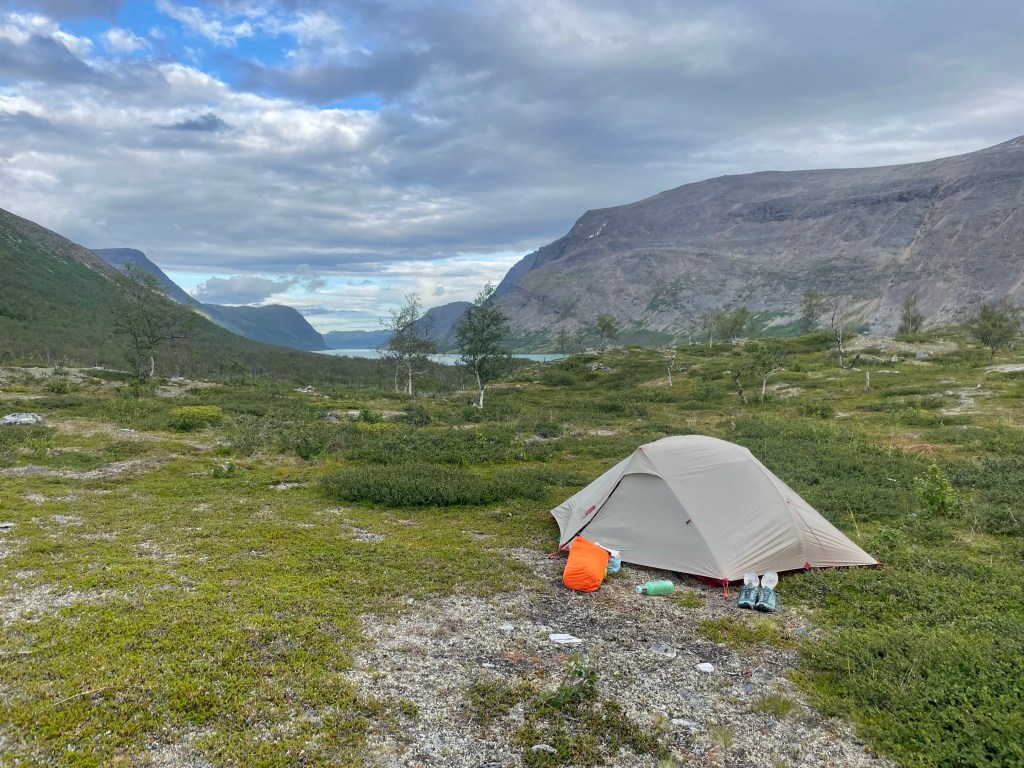 The afternoon was fine. We noticed some rain clouds behind us. So we assumed it was now our time to get wet. But we only had a little bit of rain. I also so another hiker very busy with his tent guidelines. As it was an MSR I thought I knew his concern. So I gave the cryptic instruction ‘You can place your hiking pole underneath the’. Not even a complete sentence. Donald had no clue, but apparently, I did understand his concern because he did actually as I meant. Which was placing your hiking pole underneath your tent pole that widens your tent entrance. Because it bends scary far if the wind pushes it. The hiking poles support the tent pole on the edges, so it can’t bend.