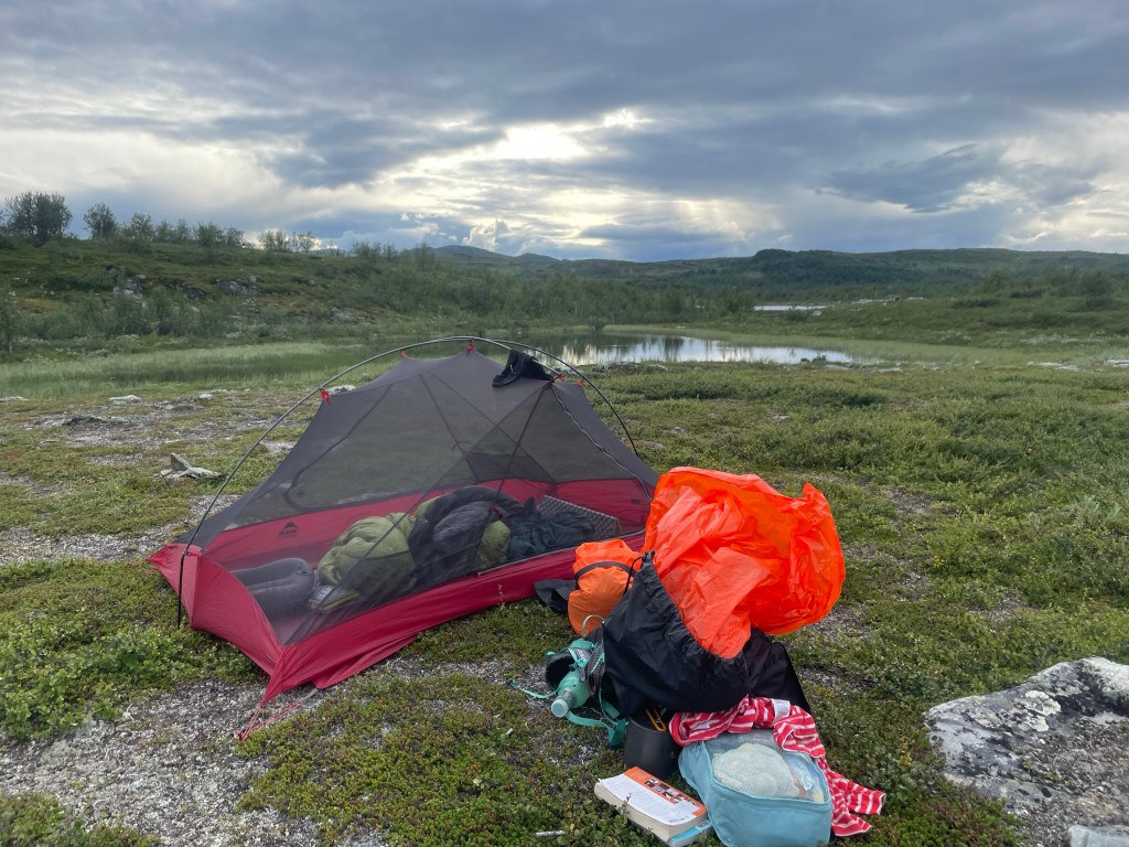 At 3 I arrived at the hut. It was already so nice and warm! Hang up my wet stuff, including my tent. So it would all dry up. And had a good lunch. Plus many more snacks. I had still a lot of food left and tomorrow I will be in Ammarnäs where there is a supermarket.