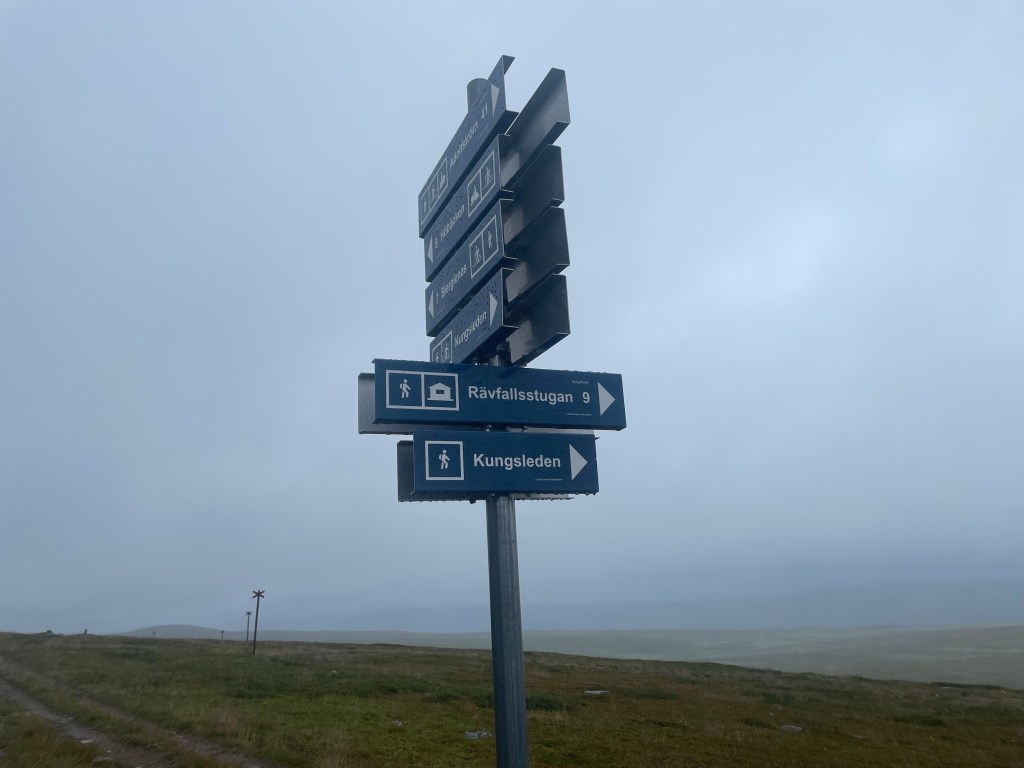 At the start of the climb to the high plateau, I saw two people coming down. Excited to see someone, because apart from the tent, I hadn’t seen/spoken to anyone this morning. They were NOT happy. Just coming down the plateau, they had headwind and rain. So they were soaked and cold. Thankfully I had a tailwind and my backpack blocked most of the cold wind plus my face was dry. I mean it was still awful, but the fact that it was less awful for me than for them, did help with the morale. Although I still had some ground to cover. So the views must have been great, but it was all in the clouds. I walked as fast as I could.