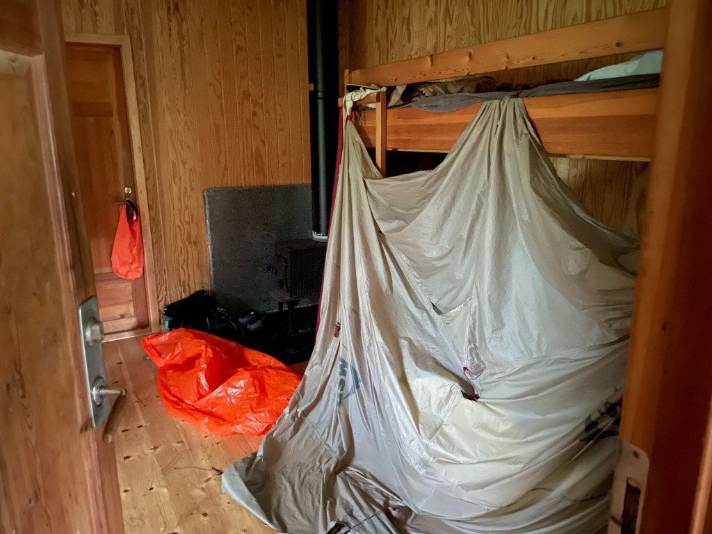 In the gut it was nice and I met many new hikers. In the evening I asked around for interest to heat the sauna. Only four other people out of the 10 wanted to join. But this was enough to justify heating the Bàstu.
