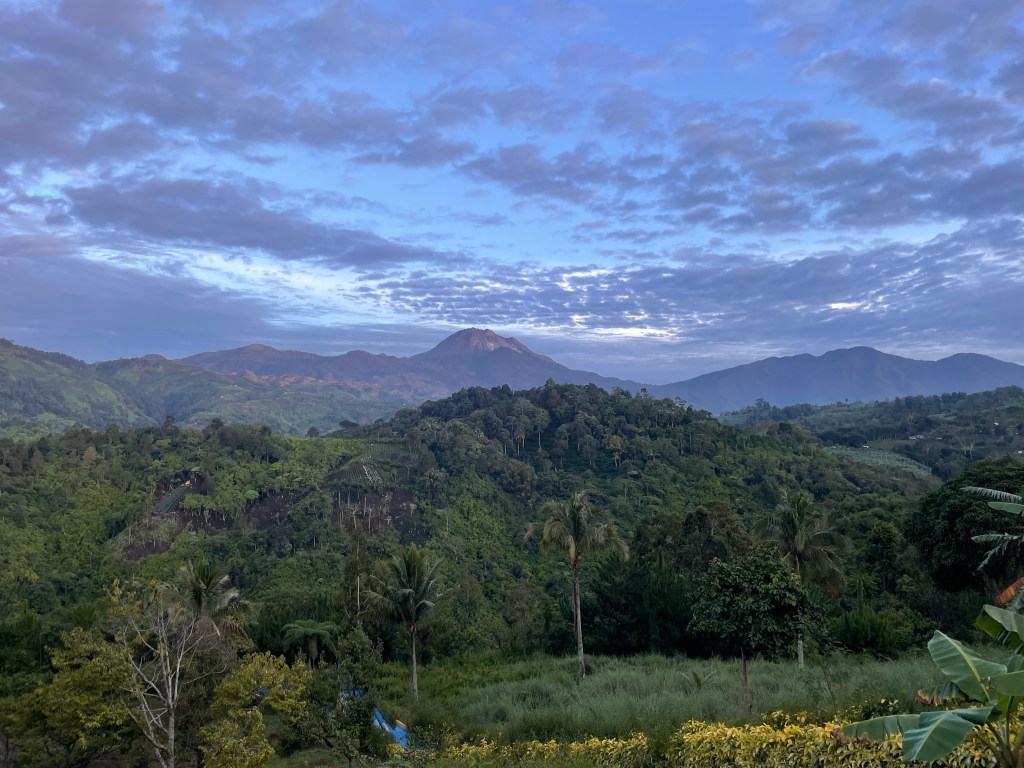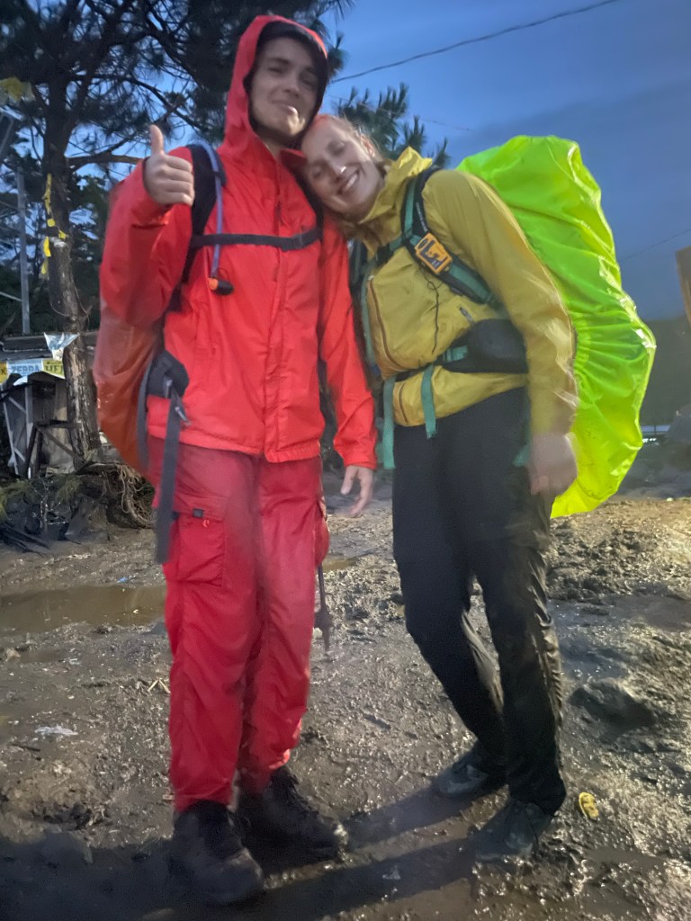 We set off after the group pictures and soon Dwight realised that walking uphill is an exercise. But it was only 7:30 am so plenty of time to walk 6km. First through farmland and later through rainforest. Absolutely stunning! And the similarities to the Northlands forest of New Zealand surprised me! Yes, there are different trees, but also the same as the tree fern. Moreover, it had the same feel and character to it. Like the terrain with roots, fallen trees, and big steps up and down instead of a gradual trail. According to the guide, we made a really good pace and we were much faster than most. The Sweden trail legs were still there so I personally could go faster, but I prefer company over pace and I don’t think I was allowed to hike solo. The fog came in after the break increasing the mystical feel of the forest. But also made me worried because my tent isn’t designed to withstand tropical rain. And the rain forecast isn’t mild.