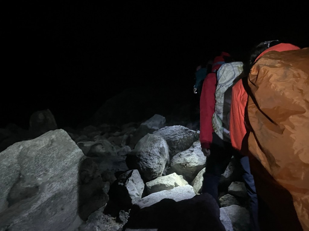 Crazy enough with all the food that was brought up, there wasn’t anything for breakfast. We would get breakfast at the top carried by the porter. Luckily I brought snacks because there is no way I’m capable of walking up to the highest peak, in the dark, for multiple hours without food.