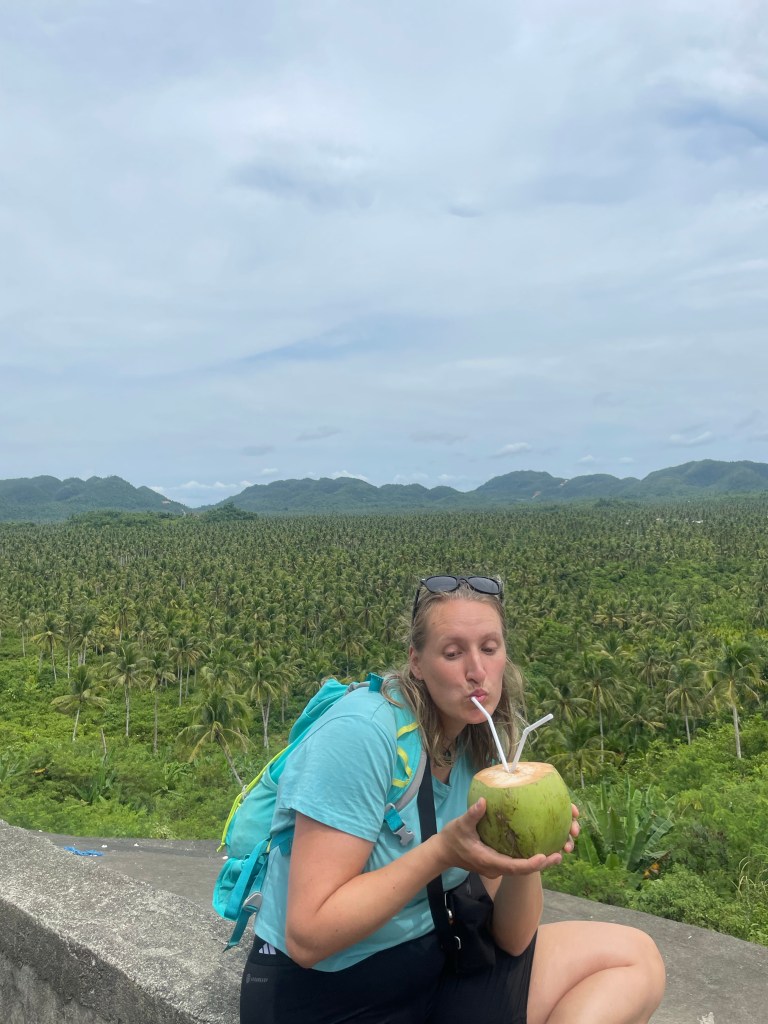 The next day the flight to Siargoa was without problem and soon I was on a tropical Island with palm trees everywhere. I am meeting my friend here, but unfortunately, Flor’s flight got canceled so she will arrive early the next day. In the hostel, 3 others just arrived after I unpacked. Two British and an Italian. They let me hang- out with them for the night. But after two cocktails and a meal, I felt really weak and actually, it became black for my eyes. Despite it being only 7:30 p.m., I went to bed. However, due to the jetlag, I woke up two hours later and couldn’t sleep until deep in the night.