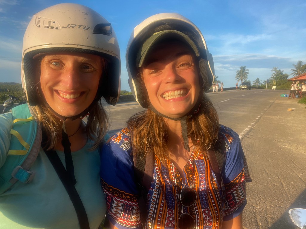 Thursday was already our last day. We rented a scooter again to go to a more sandy beach for a surf lesson. On our way, we stopped at a cold spring. Oooh so refreshing!! After the constant heat. At the moment of departure, a tropical rainstorm hit. So we waited for more than an hour. After that, we weren’t in the mood to continue. So we went back and took a lesson at Cloud 9 beach. We had individual instructors mine was named Jack Sparrow. Why not. The surfing was amazing!! Some tough exercise for my arms and with a beautiful sunset view. It was so enjoyable. The instructors had some interesting comments. Jack wanted to compliment me on my strength but halfway through got scared it was insulting. Thus eventually this what he said ‘Wow you’re shoulders are …. Working’. The advice for Flor, who struggled a bit more with standing up, was: ‘Just balance!’