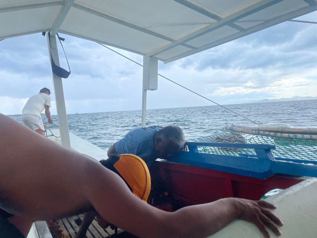 The next day we got up really early for our tour of the jellyfish only to discover that the boat didn’t have the required permits and we couldn’t go. Why they didn’t tell us this yesterday evening when we confirmed the departure time is a puzzle to us. We found another tour operator to take us on a tri-island tour. Which definitely wasn’t the same but still really nice. Similar to the Filipino’s we did a full-on photoshoot, however, our laughing at ourselves didn’t make for very photogenic pictures. On the way back a thunderstorm rolled in. Being on the water with lightning isn’t the best and on top of that, the motor broke down. Flor and I weren’t worried, the thunder was still away from us and there were so many tourist boats that surely one would give us a tow. However, not everyone was so calm. Some hide their head down and near tears. But 10 min later we were towed and arrived safely in the dock.