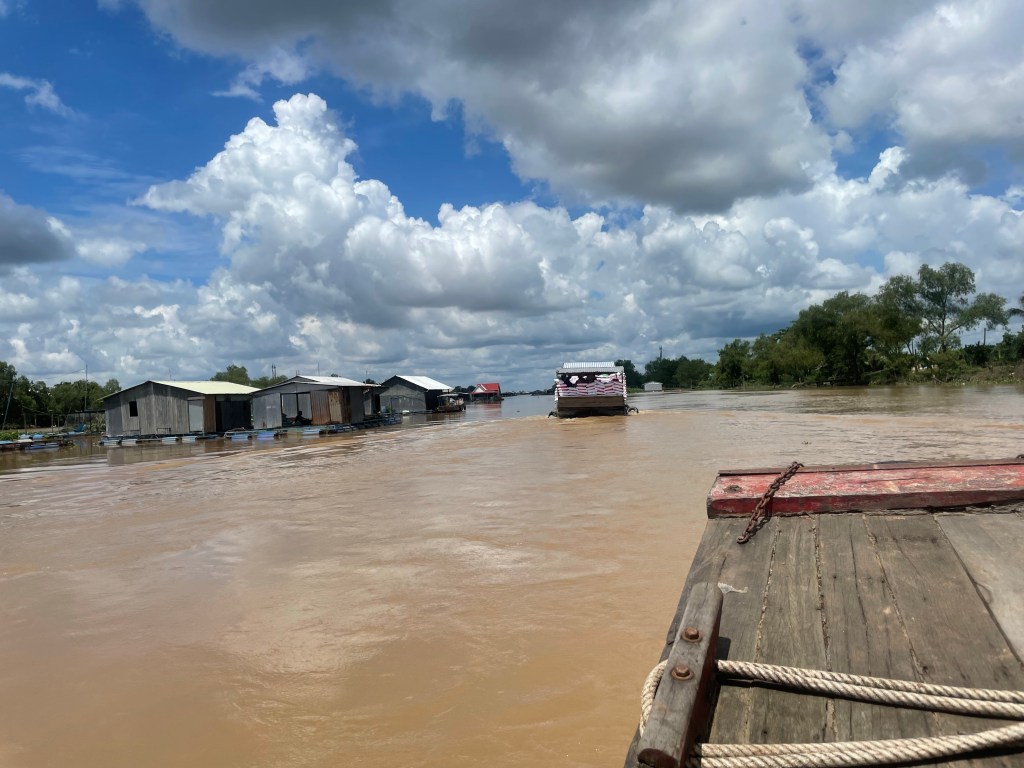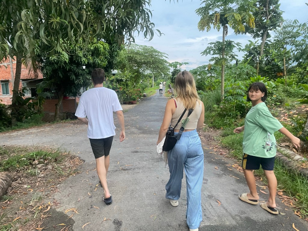 The Mekong tour was organised by Mr. Ban. A kind man, who has no clue about interpunctions. So his texts were always hilarious. Nevertheless, it became clear that in addition to the normal itinerary, we would visit his nephew’s first birthday. Why not? Three awkward Dutchies with no present for the birthday boy. This was also the very first activity and it was to be our lunch as well.