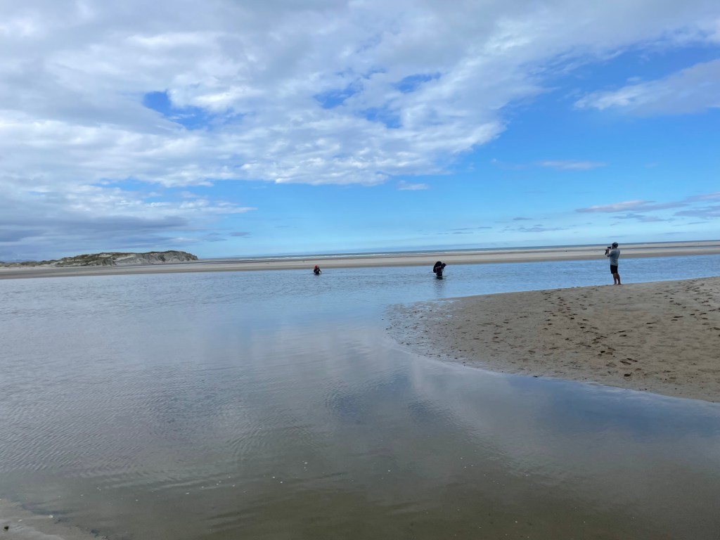 The beach was lovely. Gorgeous views and I find watching the waves break very addicting. Always slightly different and I try to predict whether the wave run-up will come up to my feet. I get really good at it, but I got my shoes wet and a river crossing anyway.