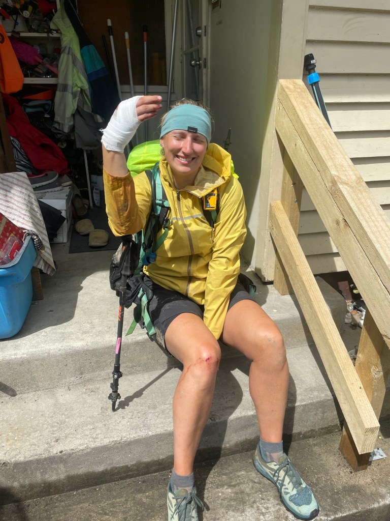 Back at the beginning of the track was the campsite and the kind lady searched for someone to drive us. Meanwhile, I kept my hand high as I had no idea if it was still bleeding.