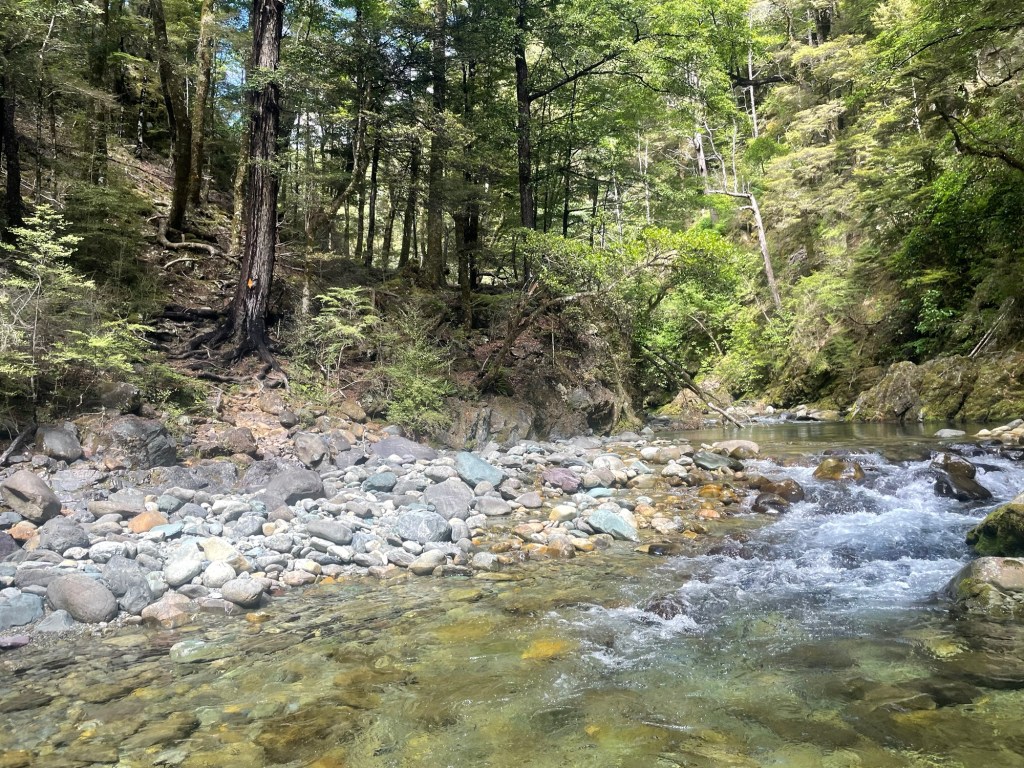 Then I walked along the river for a long time, with places where the trail was difficult and narrow due to landslides. I thought I would get lunch and a swim at the top, but it took too long. So I stopped earlier and did just that. Eventually getting annoyed with sandflies although it can be A LOT worse.
