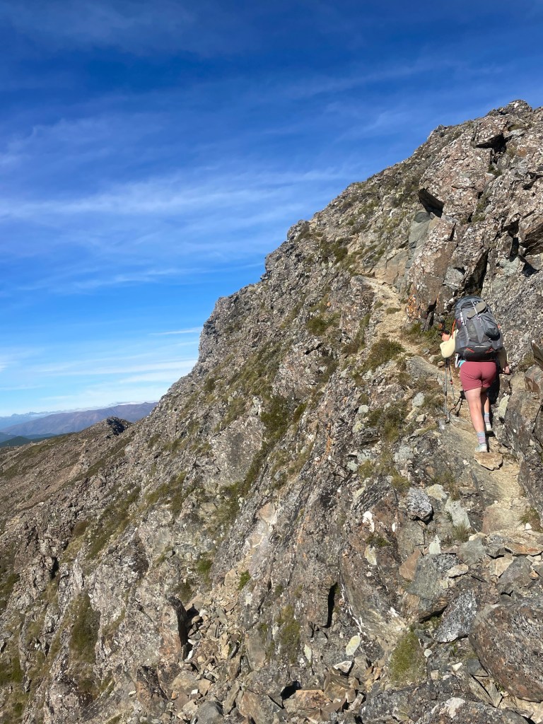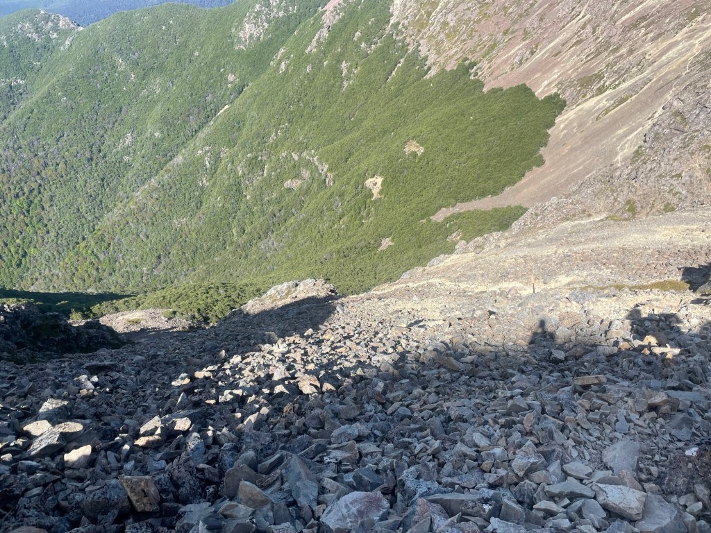 Anna and I woke up after another night disturbed by mice. But luckily they didn’t get to our food. Leaving the hut just before 7 am, we could climb to Little Rintoul while it was still cool. The only unfortunate thing is that Old Man Hut is located 200m below the track. The instant climb on cold muscles isn’t easy but what are you going to do about it?