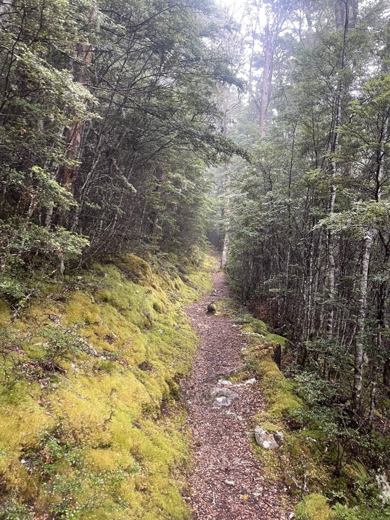 The trail was gorgeous and overall a very well-managed tramping trail. The views of the valley were blocked by the clouds. It took a lot to keep hiking, but if I wanted to reach the end of the hike and hitchhike to Hanmer Springs, there was only one way.